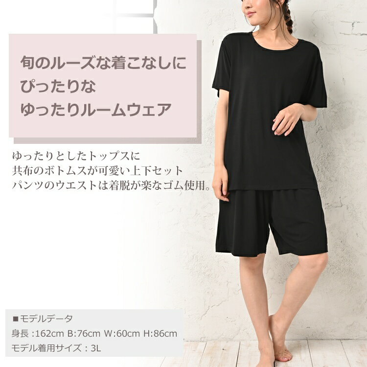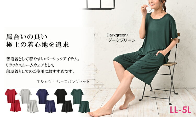 大きいサイズ レディース インナー 上下セットアップ 部屋着セット ルームウェア リラックスウェア パジャマ ワンマイルウェア 半袖トップス 家族でお揃い 半袖カットソー ハーフパンツ ショートパンツ ウエストゴム 無地 Uネック クルーネック シンプル さらさら生地 寝間着 薄手 涼しい ストレッチ生地 吸汗 ゆったり 大きめ 大人 きれいめ かわいい おしゃれ 単品使い カラバリ豊富 30代 40代 50代 春 夏 秋 冬 LL 3L 4L 5L 13号 15号 17号 19号 qp-all-in0008楽々Tシャツ+ハーフパンツのルームウェアセット。